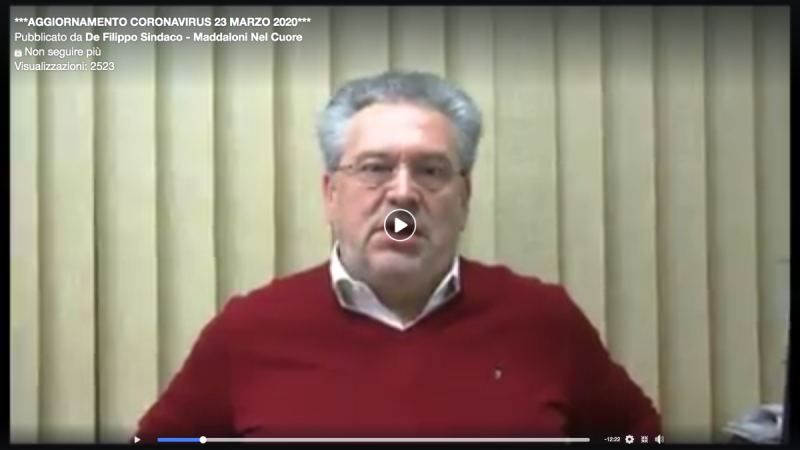 Consueto appuntamento video con il Sindaco di Maddaloni Andrea De Filippo che, sulla sua pagina facebook, ha fatto il punto, con un videomessaggio, sul coronavirus nella propria città: "Dobbiamo continuare a tenere alta la guardia e rispettare le regole che il Presidente della Regione Campania De Luca ha prorogato fino al 14 aprile. Ad oggi sul nostro territorio abbiamo 8 positivi, non 9 come ho letto. Non so perchè ce ne attribuiscono 9, approfondiremo". Così il primo cittadino ha concluso il suo intervento: "Ieri, dopo aver appreso la notizia della sua scomparsa, abbiamo recitato una preghiera per lei. Ho un bellissimo ricordo della signora e rivolgo alla famiglia le più sentite condoglianze anche a nome di tutta la città di Maddaloni".