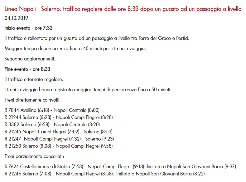 Questo quanto apprendiamo da Trenitalia