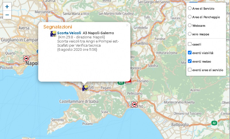 "Scorta Veicoli A3 Napoli-Salerno (Km 29.8 - direzione: Napoli). Scorta veicoli tra Angri e Pompei est-Scafati per Verifica tecnica