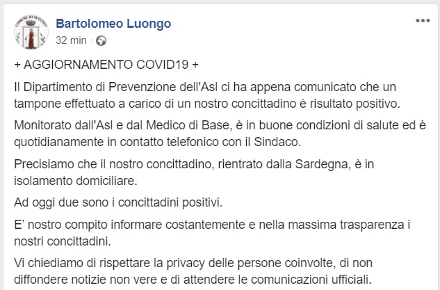 Questo quanto comunicato dal Portavoce del Sindaco di Succivo