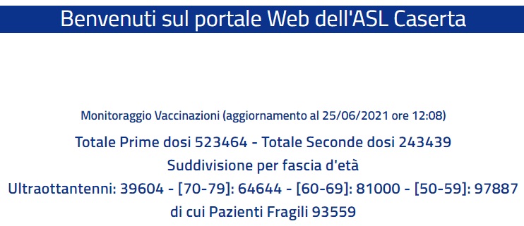 Ore 12. ASL CE. Somministrate 523.464 prime dosi