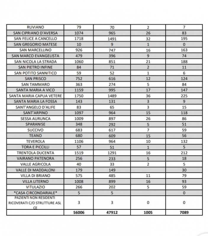 Nonostante la zona rossa da giorni anche in provincia di Caserta, il numero dei positivi non diminuisce più di tanto. La provincia di Caserta non scende sotto i 7mila positivi attuali totali. 284 il numero dei nuovi positivi al coronavirus tra il 6 ed il 7 Aprile contro le 315 guarigioni. Il dato dei morti rimane alto: 15 tra il 6 ed il 7 Aprile 2021. Ecco i dati comune per comune in 'Terra di Lavoro'.