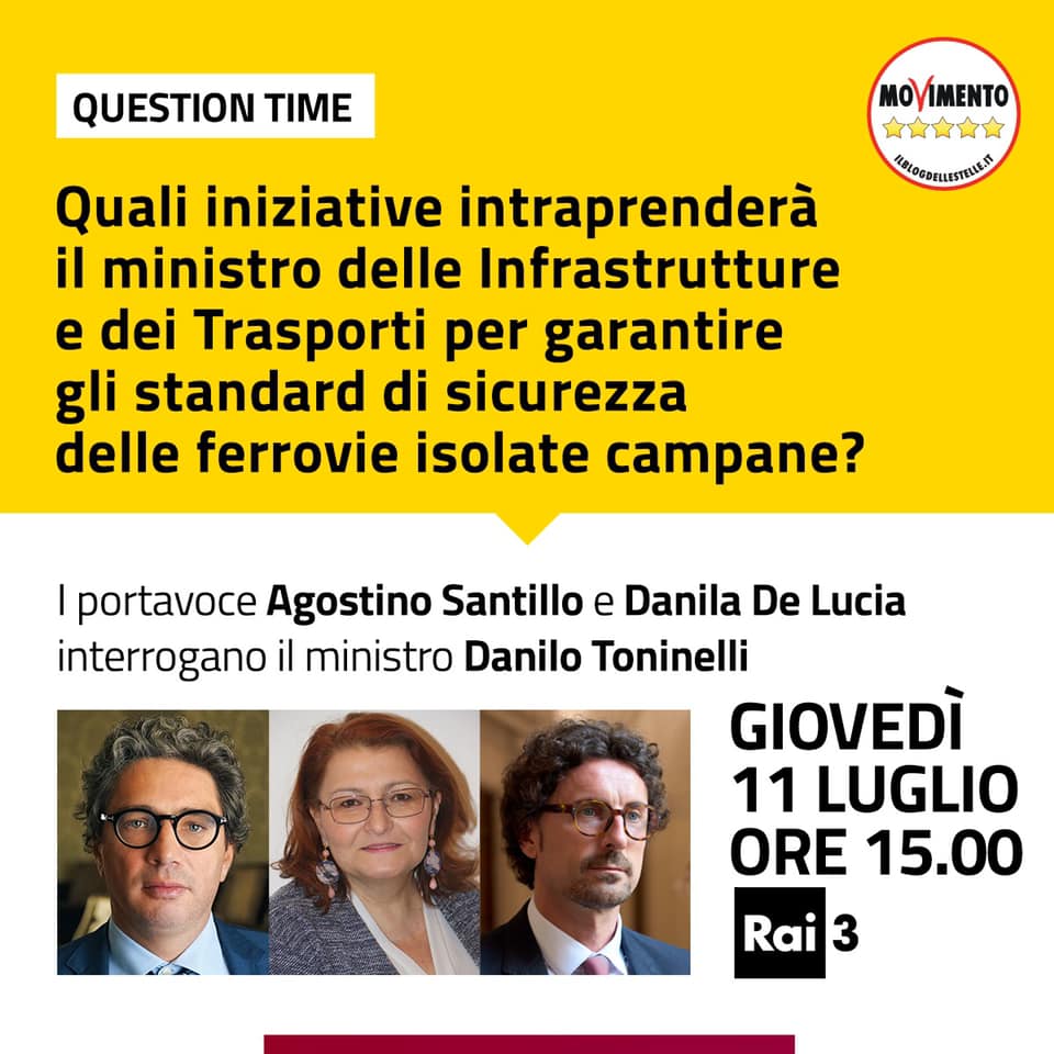 "Vi invito a seguire in diretta su Rai 3 alle ore 15, oppure su questa pagina Facebook, la mia interrogazione al Ministro Toninelli."
