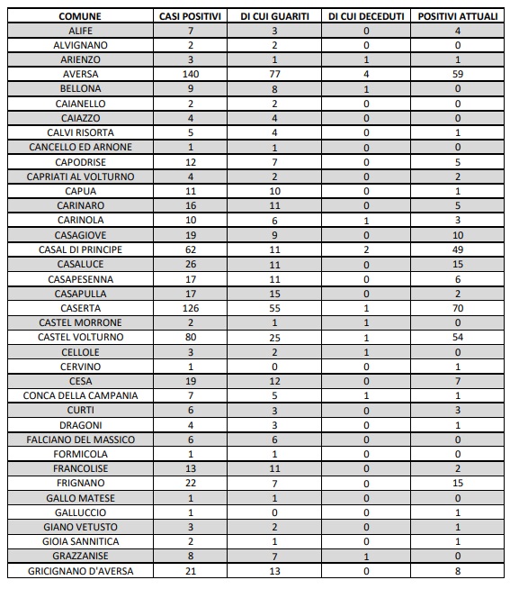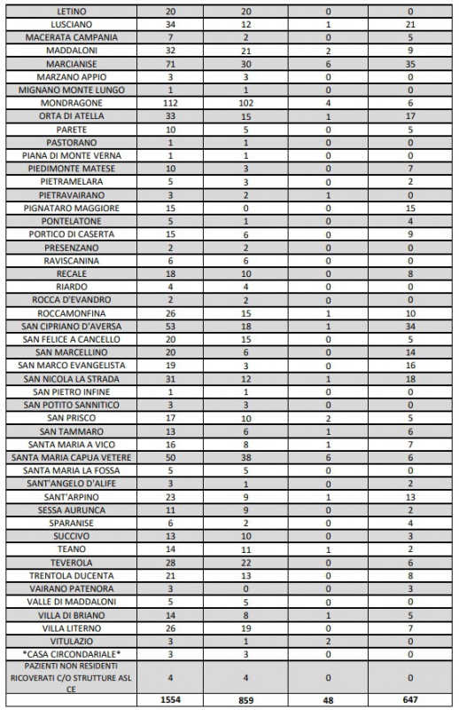 Questo quanto comunicato dall'ASL Caserta