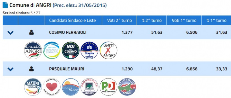 Ha inizio la pubblicazione dei risultati dello scrutinio delle votazioni Comunali a Angri sul sito del Ministero.