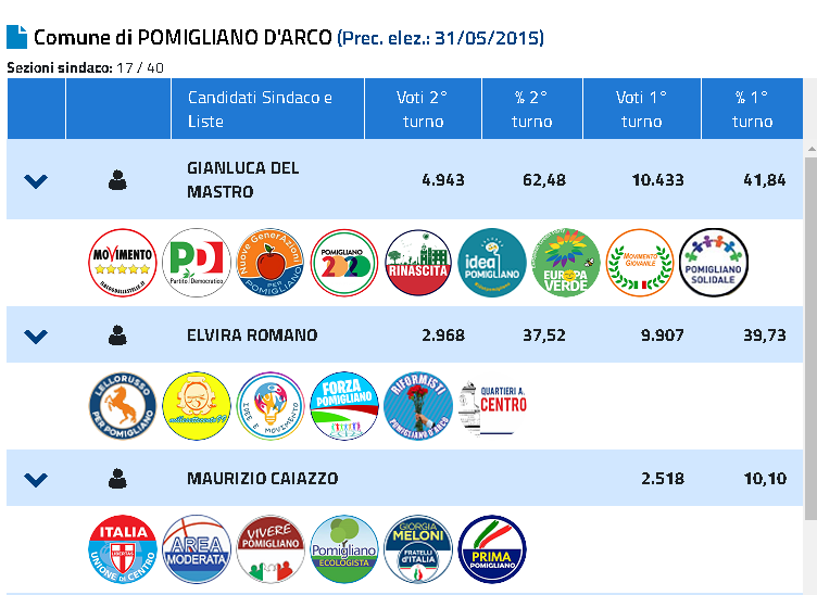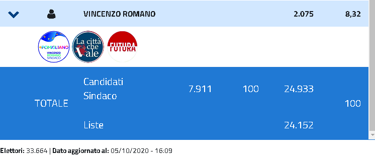 Prosegue la pubblicazione dei risultati dello scrutinio delle votazioni Comunali a Pomigliano d'Arco sul sito del Ministero.