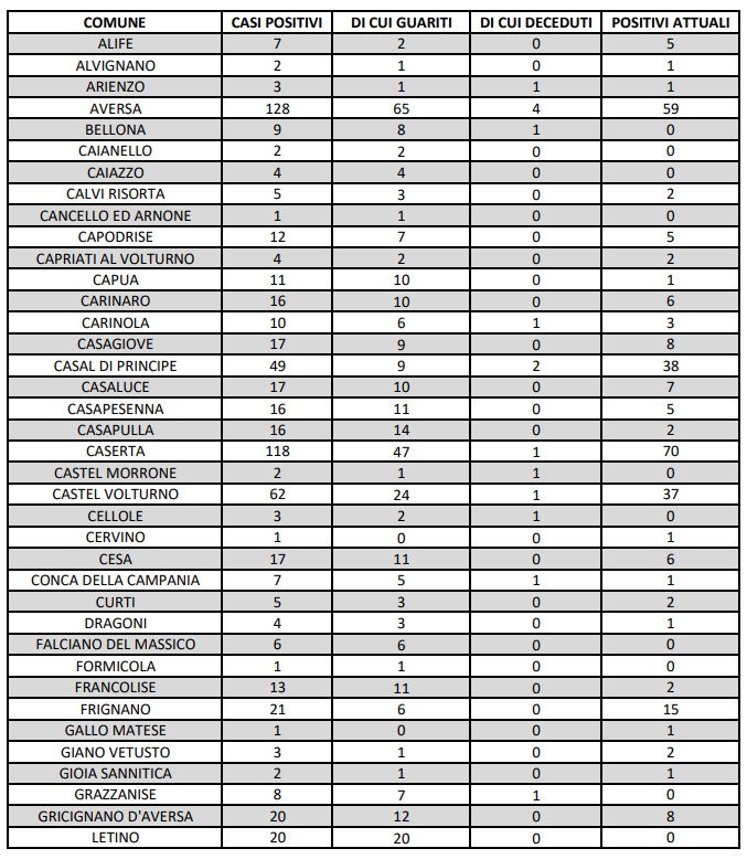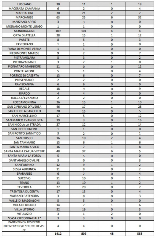 Questo quanto comunicato dall'ASL Caserta