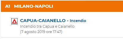 ORE 18:00. Incendio in autostrada tra Capua e Caianello