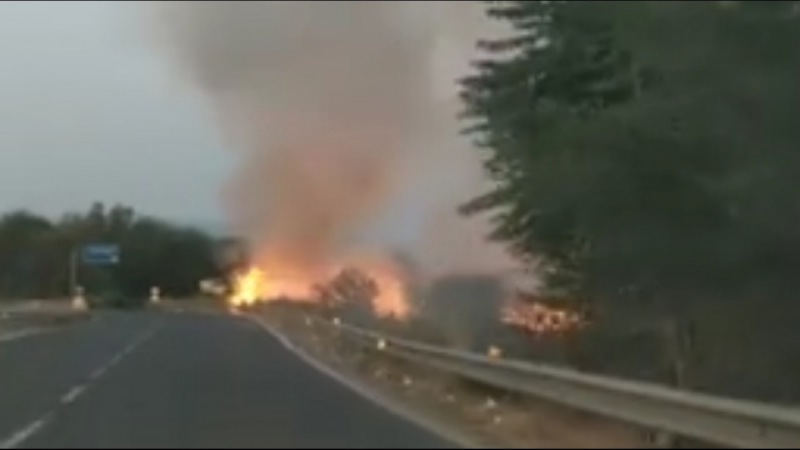 Due roghi abbastanza importanti sono divampati a pochi metri dall'asse mediano. Coltre nera attorno ai roghi. Siamo nei pressi di Giugliano.