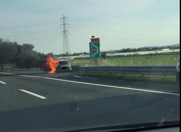 All'altezza dello svincolo Pomigliano-Villa Literno un'auto ha preso fuoco e c'è tanto fumo nero sulla carreggiata.