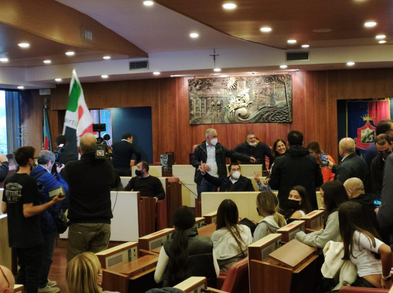 Dopo la festa al comitato elettorale (LEGGI QUI), c'è stato il corteo fino al Comune, e nella sala consiliare il neo rieletto Sindaco Marino ha festeggiato con i consiglieri eletti e tutti i sostenitori.