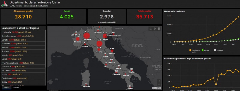 Questi i dati comunicati sul contagio del Coronavirus a livello nazionale dalla Prot. Civile. Si tratta di 28.710 positivi, di questi 4.025 guariti e 2.978 deceduti.