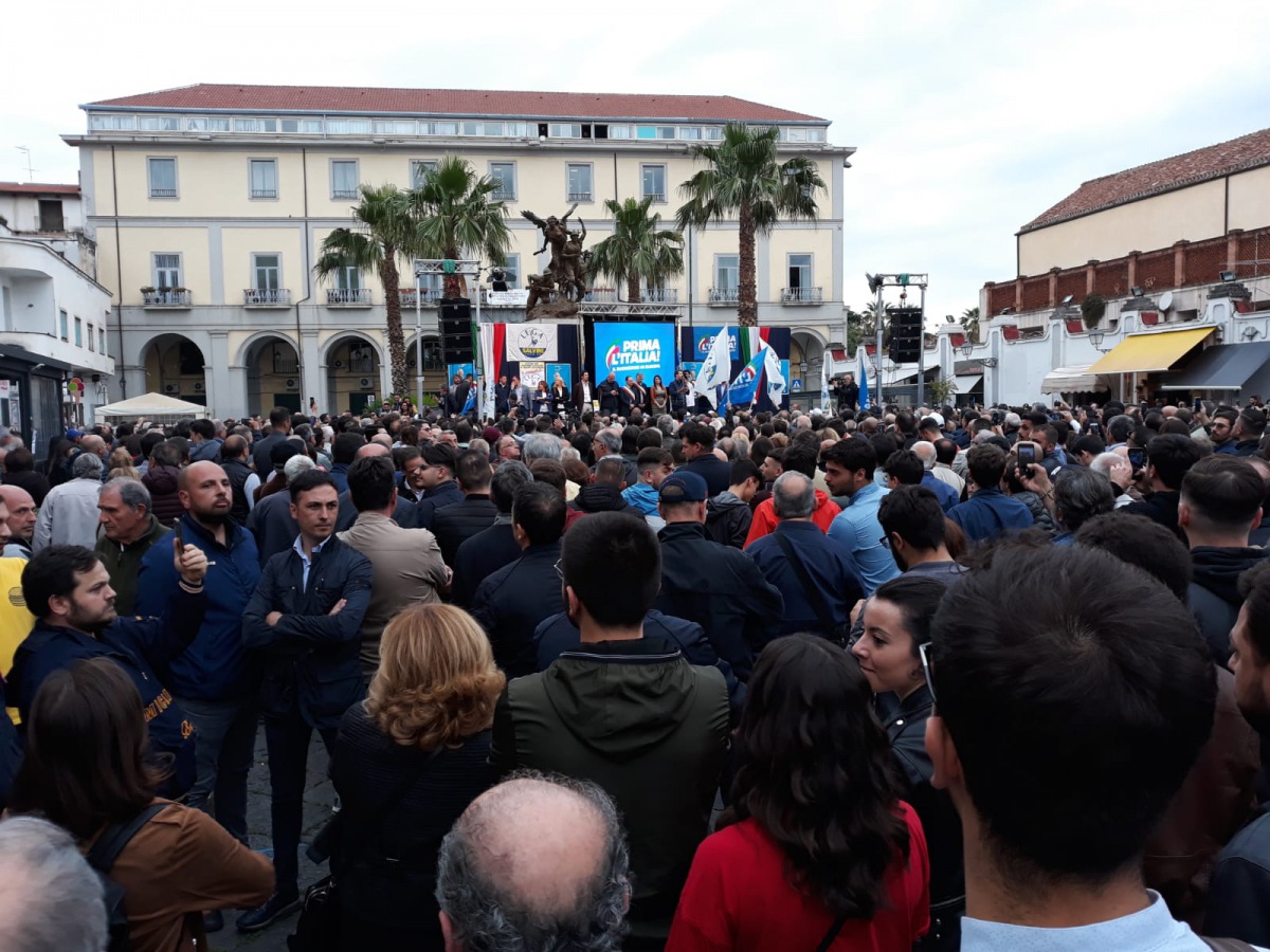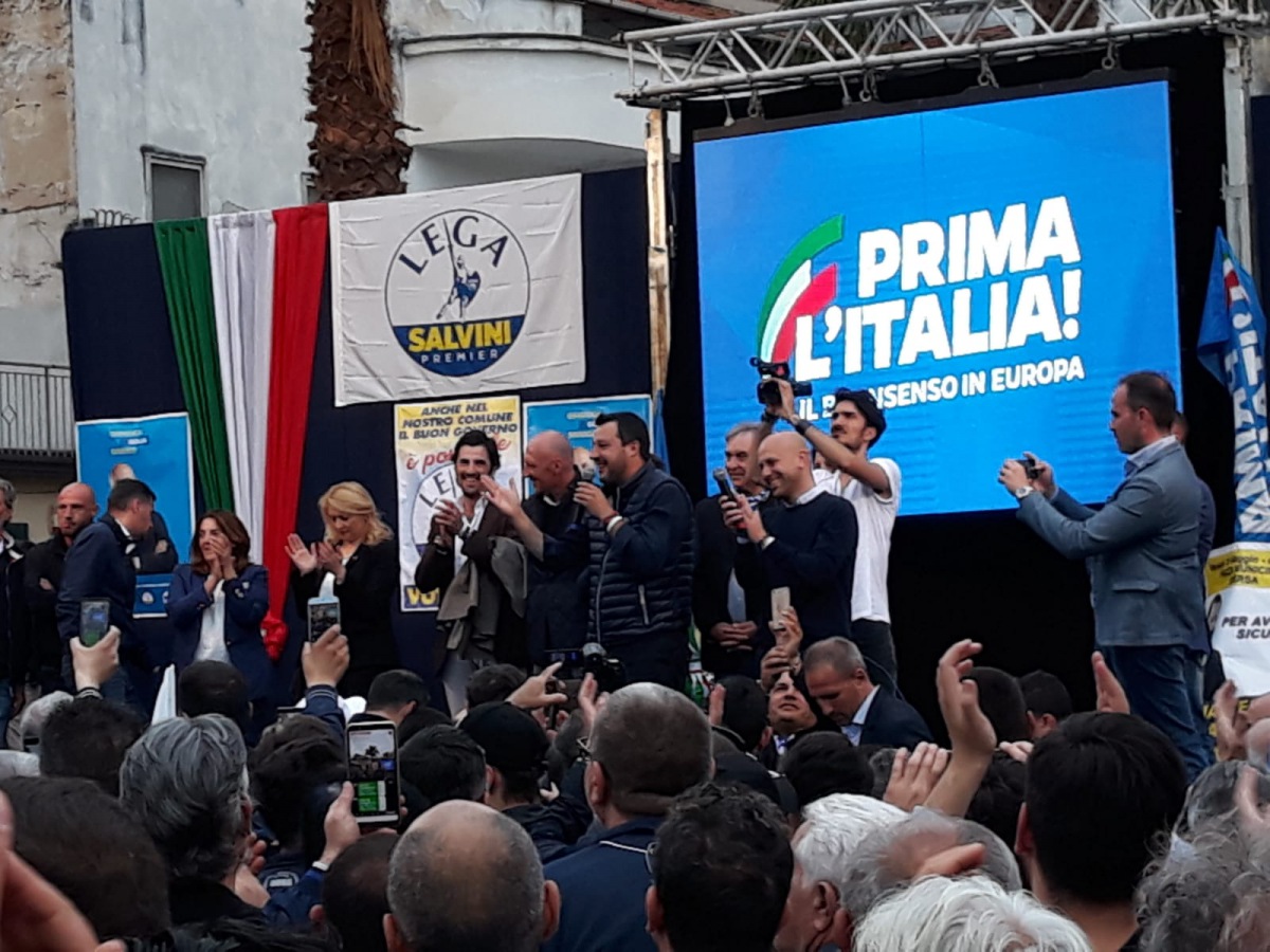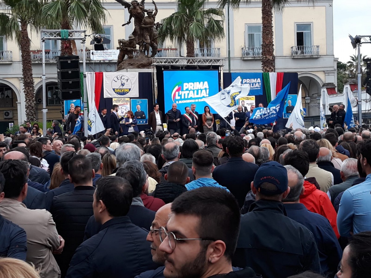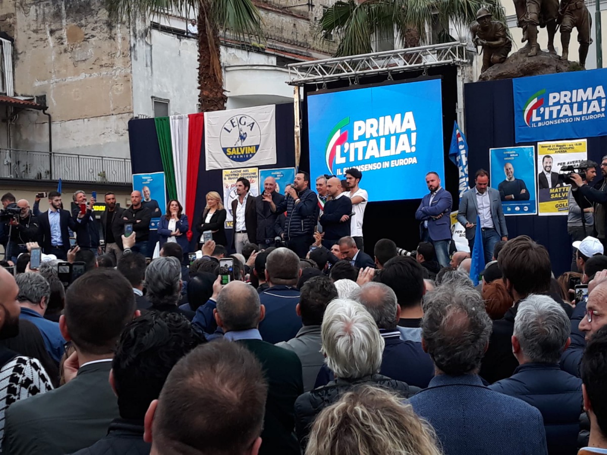 Diverse migliaia di persone per Matteo Salvini ad Aversa. Gremite sia piazza Municipio che via Diaz. Il Ministro è arrivato puntuale e nel suo discorso ha parlato di porti e immigrati. Al suo fianco il Sottosegretario di Stato Pina Castiello, il Coordinatore provinciale Salvatore Mastroianni, il candidato a Sndaco di Aversa Gianluca Golia e diversi sindaci dell'Agro Aversano. "Andremo in Europa per difendere il made in Italy soprattutto agro-alimentare - le dichiarazioni di Salvini -. Aversa è casa mia come lo è Milano. Era impensabile per noi, sino a qualche anno fa, essere qui davanti a migliaia di persone come voi".