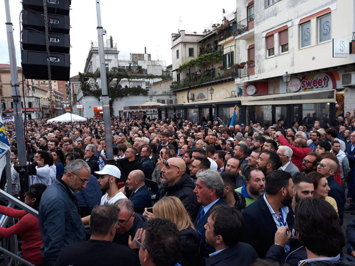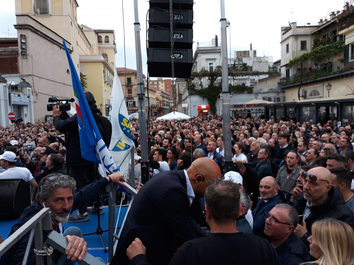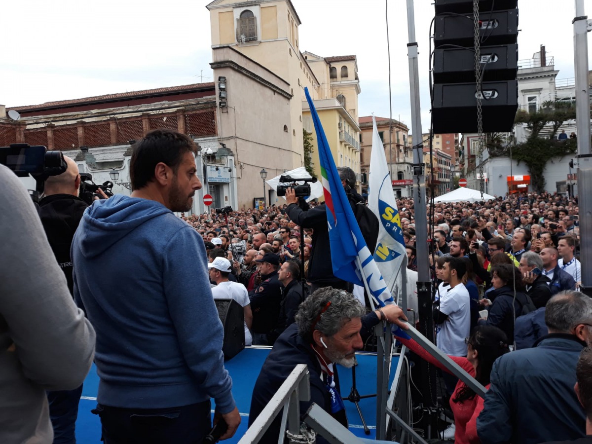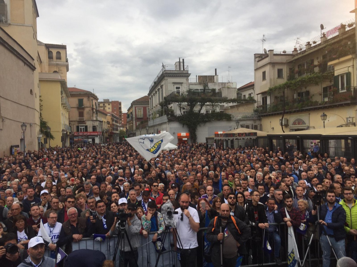Diverse migliaia di persone per Matteo Salvini ad Aversa. Gremite sia piazza Municipio che via Diaz. Il Ministro è arrivato puntuale e nel suo discorso ha parlato di porti e immigrati. Al suo fianco il Sottosegretario di Stato Pina Castiello, il Coordinatore provinciale Salvatore Mastroianni, il candidato a Sndaco di Aversa Gianluca Golia e diversi sindaci dell'Agro Aversano. "Andremo in Europa per difendere il made in Italy soprattutto agro-alimentare - le dichiarazioni di Salvini -. Aversa è casa mia come lo è Milano. Era impensabile per noi, sino a qualche anno fa, essere qui davanti a migliaia di persone come voi".