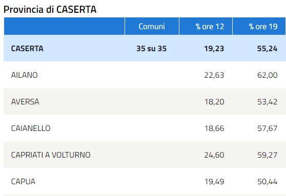 ORE 19:00. AFFLUENZA AL VOTO. AVERSA, CAPUA, AILANO (DATI MINISTERO)