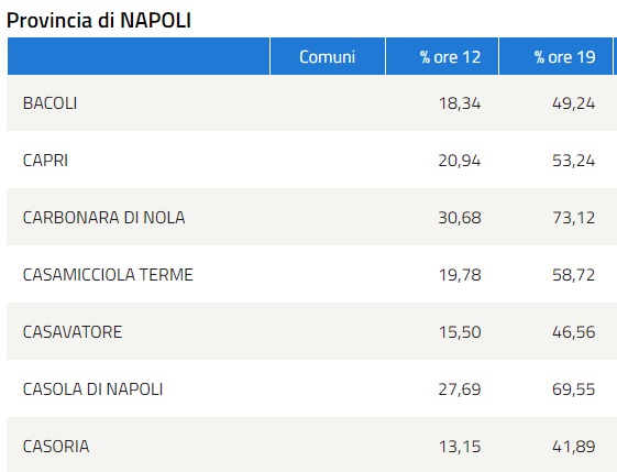 ORE 19:00. AFFLUENZA AL VOTO. BACOLI, CASAVATORE, CASORIA (DATI MINISTERO)