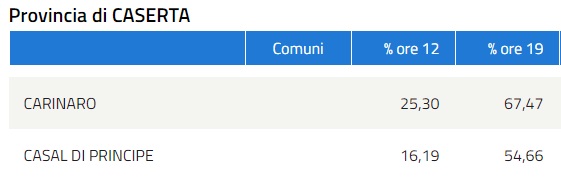 ORE 19:00. AFFLUENZA AL VOTO. CARINARO E CASAL DI PRINCIPE (DATI MINISTERO)
