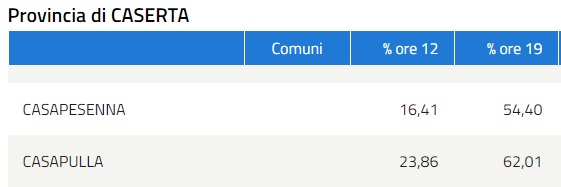 ORE 19:00. AFFLUENZA AL VOTO. CASAPESENNA E CASAPULLA (DATI MINISTERO)