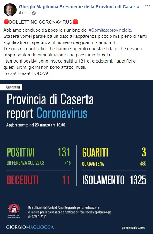 Questo quanto pubblicato sulla pagina facebook del Pres. Magliocca: