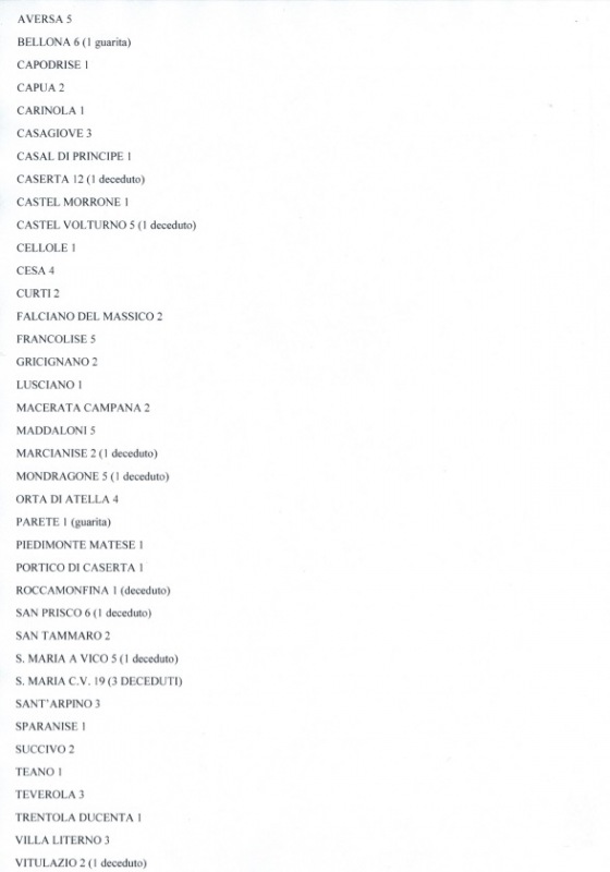 CE. H. 19. CORONAVIRUS. I positivi Comune per Comune della Provincia