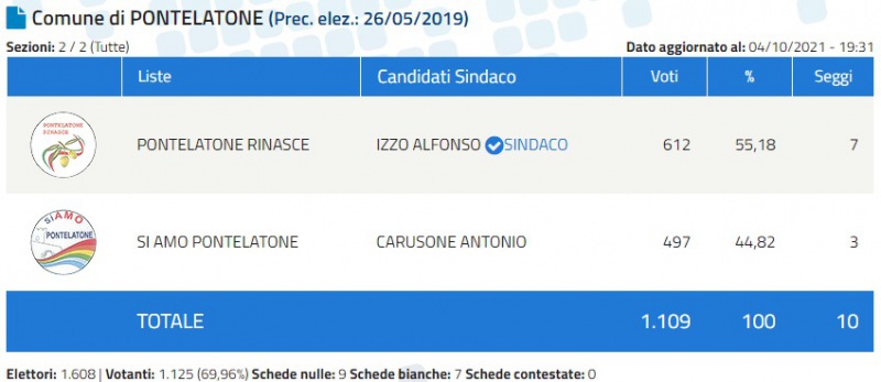 Concluso lo scrutinio a Pontelatone, e Alfonso Izzo è stato eletto Sindaco.