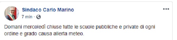 Questo il post pubblicato sulla pagina fb ufficiale del Sindaco di Caserta Carlo Marino.