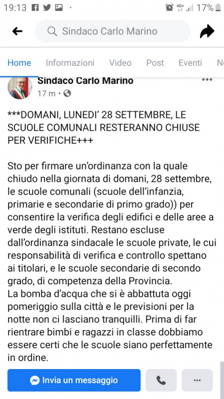 Ecco il testo del post pubblicato dal Sindaco di Ce Carlo Marino: