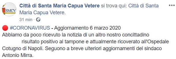 Quest parte di quanto apprendiamo dalla pagina facebook 'Città di Santa Maria Capua Vetere'