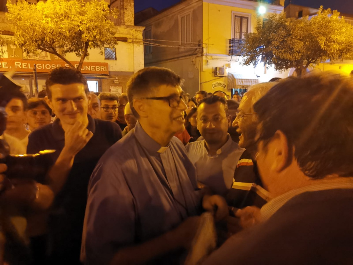 Un fiume di persone proveniente da ogni angolo dell'agro aversano per la fiaccolata contro i roghi, numerosissimi in questa estate in una zona prima chiamata Campania Felix. Presente anche Padre Maurizio Patriciello.