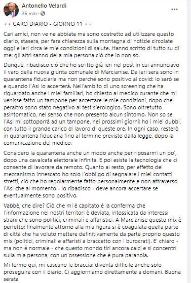 Dalla pagina Facebook del Sindaco di Marcianise Antonello Velardi