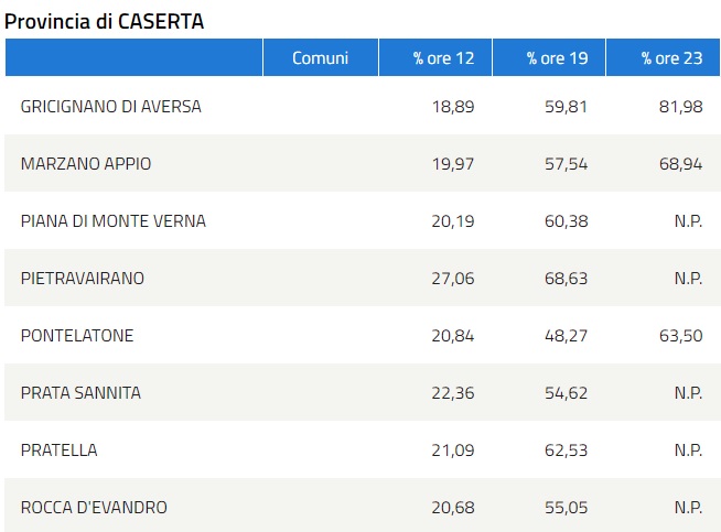 ORE 23:00. AFFLUENZA AL VOTO. GRICIGNANO E ALTO CASERTANO (DATI MINISTERO)