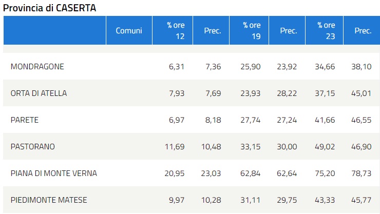 ORE 23:00. AFFLUENZA AL VOTO EUROPEE. MONDRAGONE, ORTA E PIEDIMONTE (DATI MINISTERO)