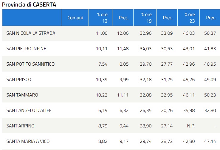 ORE 23:00. AFFLUENZA AL VOTO EUROPEE. S.NICOLA L.S. E S.MARIA A VICO (DATI MINISTERO)