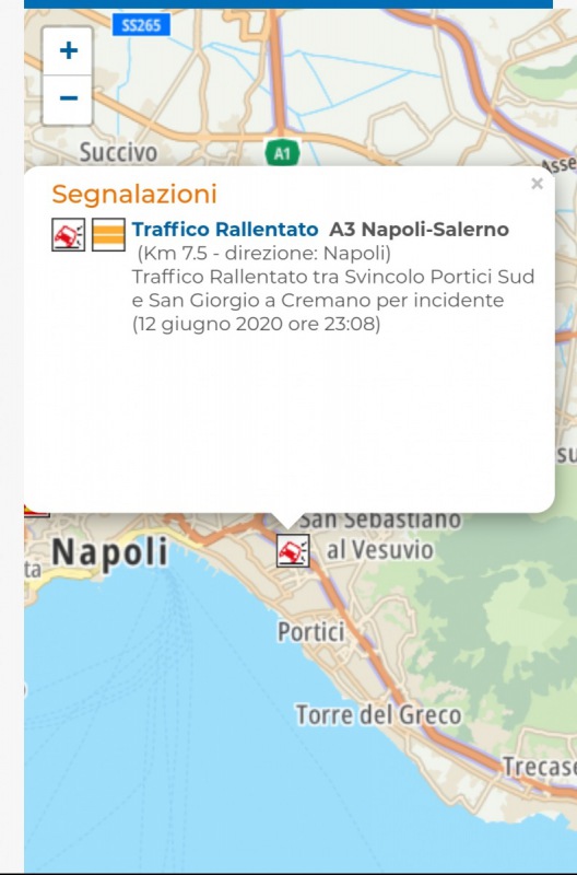 "Traffico Rallentato A3 Napoli-Salerno (Km 7.5 - direzione: Napoli). Traffico Rallentato tra Svincolo Portici Sud e San Giorgio a Cremano per incidente