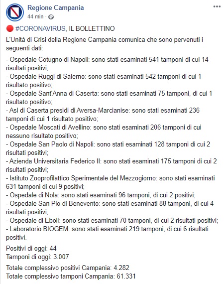 Questo quanto pubblicato dalla Regione Campania