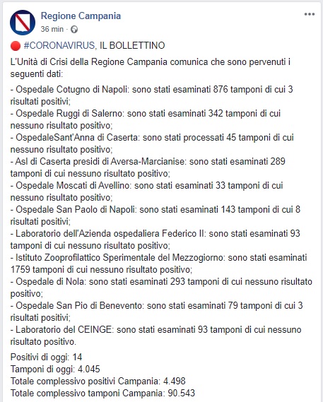 Questo quanto comunicato dalla Regione Campania