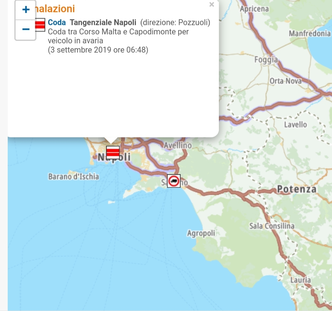 "Coda Tangenziale Napoli (direzione: Pozzuoli). Coda tra Corso Malta e Capodimonte per veicolo in avaria