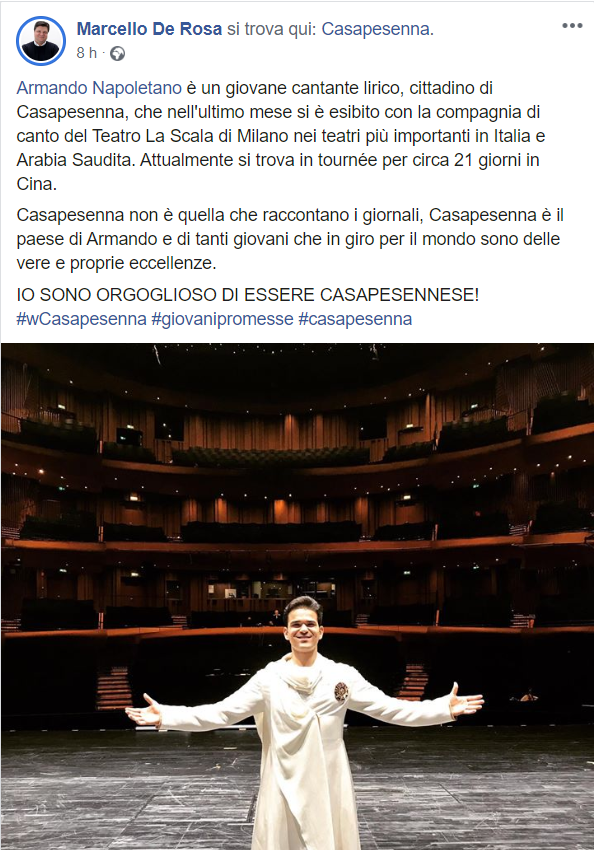 Questo quanto pubblicato sulla pagina dell Sindaco De Rosa