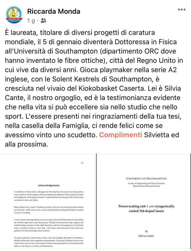 Questo quanto pubblicato sulla pagina fb della responsabile Kioko Basket Riccarda Monda