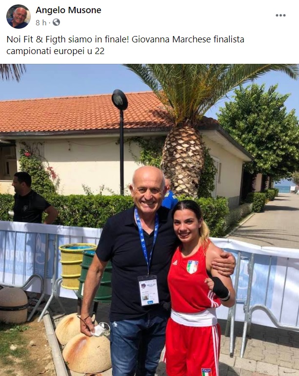 Questo quanto apprendiamo dalla pagina fb dell'ex olimpionico Angelo Musone: "Noi Fit & Figth siamo in finale! Giovanna Marchese finalista campionati europei u 22"