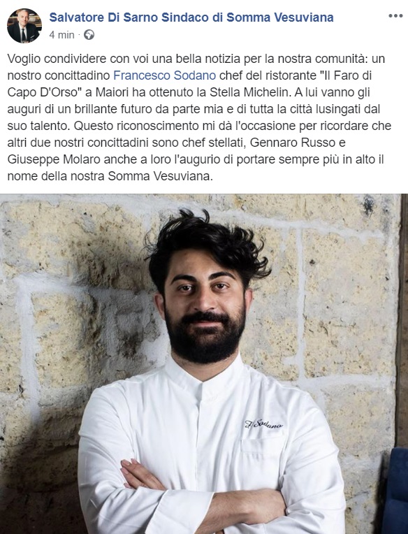 Questo quanto pubblicato sulla pagina Facebook del Sindaco di Somma Vesuviana, Salvatore Di Sarno: