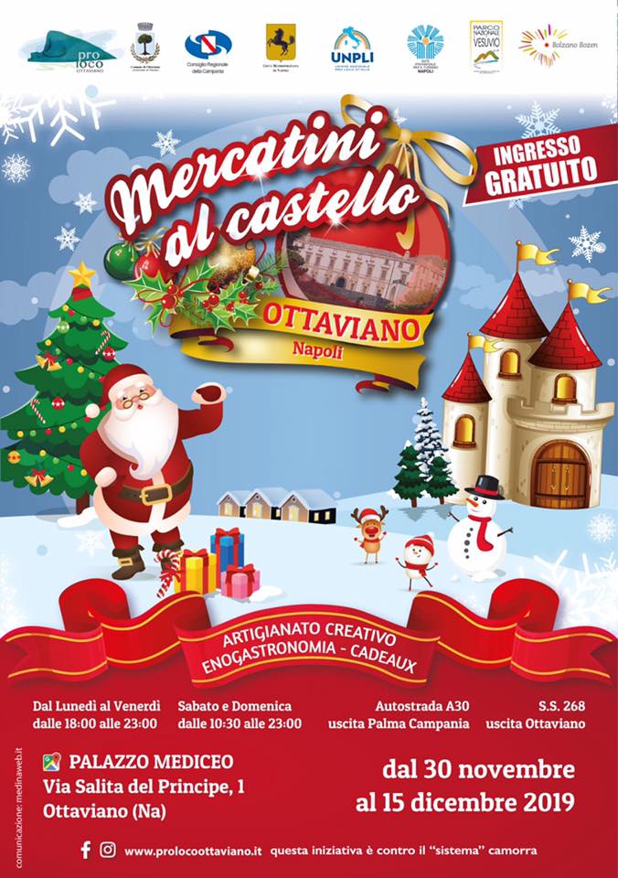 Dal 30 novembre al 15 dicembre ad Ottaviano ci sarà i "Mercatini al catsello", un'occasione dove poter fare gli acquisti natalizi di artigianato ed enogastronomia locale.