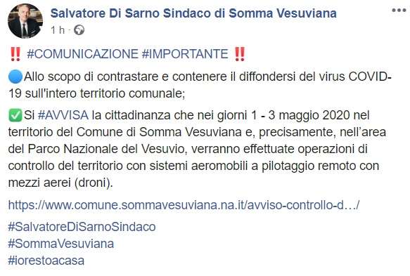 Questo quanto apprendiamo dalla pagina facebook del Sindaco Di Sarno: