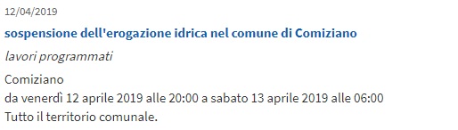 PALMA CAMPANIA-CASAMARCIANO-COMIZIANO. Nella notte mancherà l'acqua