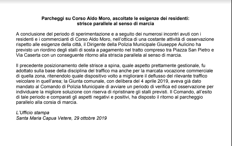 Di seguito, il testo del comunicato, inviatoci dal comune di Santa Maria Capua Vetere.