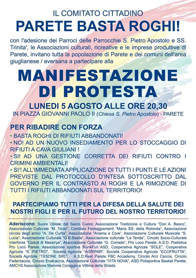 Domani sera, lunedì 5 agosto, a Parete ci sarà una manifestazione di protesta per dire basta ai roghi.