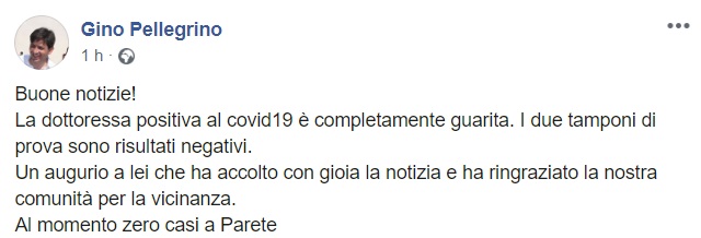 Questo quanto pubblicato sulla pagina facebook del Sindaco Pellegrino:
