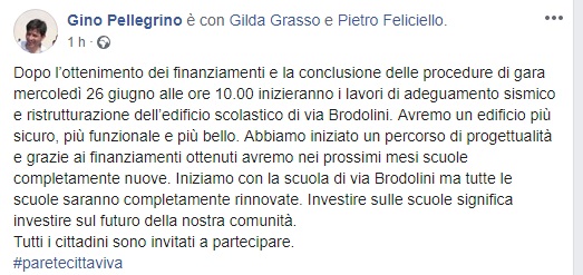 Questo il post pubblicato sulla pagina fb ufficiale del Sindaco di Parete Gino Pellegrino.