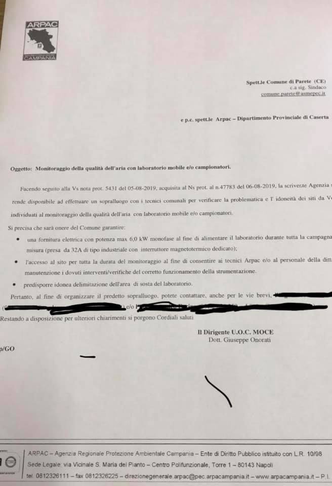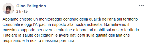 Questo il post pubblicato su Facebook dal Sindaco di Parete Gino Pellegrino: