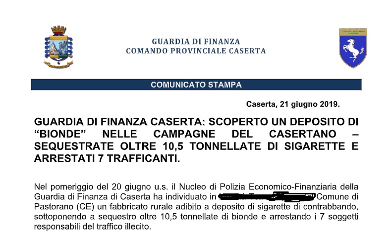 Questo parte del comunicato inviatoci dal Comando Provinciale della Guardia di Finanza di Caserta.